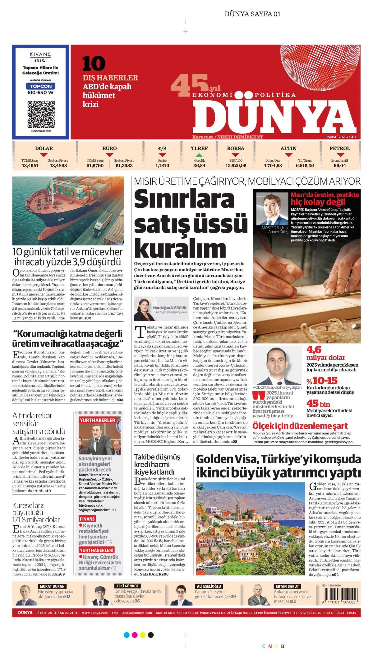 Dünya Gazetesi 4 Şubat 2026 Günü Manşeti
